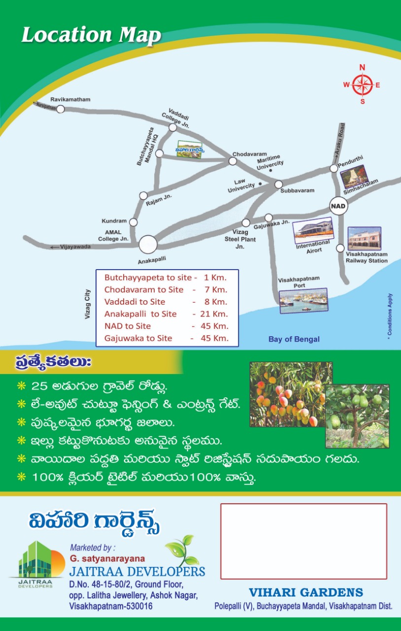 • Vihari Gardends-1, Polepalli Village, Butchayyapeta (Mandal), Anakapalle(Dist), Andhra Pradesh